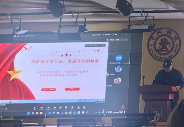 李秉瑜以“认真学习贯彻党的二十届四中全会精神,高标准建设海南自由贸易港”为主题,围绕全会核心要义与自贸港建设蓝图展开深度分享,深化了同学们对全会精神的理解。他表示,全会审议通过了“十五五”规划建议,明确了六大核心原则,“十四五”期间我国经济实力稳步跃升,2025年国内生产总值预计达140万亿元,科技产业成果丰硕,民生保障体系不断完善,为“十五五”发展筑牢根基。“十五五”规划聚焦实体经济、科技自立自强、民生改善、绿色转型和国防现代化等关键领域,勾勒出高质量发展路径。李秉瑜还从地理、航海双重优势切入,介绍了海南自由自贸港制度型开放成效:离岛免税购物金额超2000亿元,免签国家拓展至86个,“南繁硅谷”等产业园建设稳步推进。他强调,今年12月18日全岛封关是“一线放开、二线管住”的高水平开放举措,彰显中国拥抱全球化的决心。