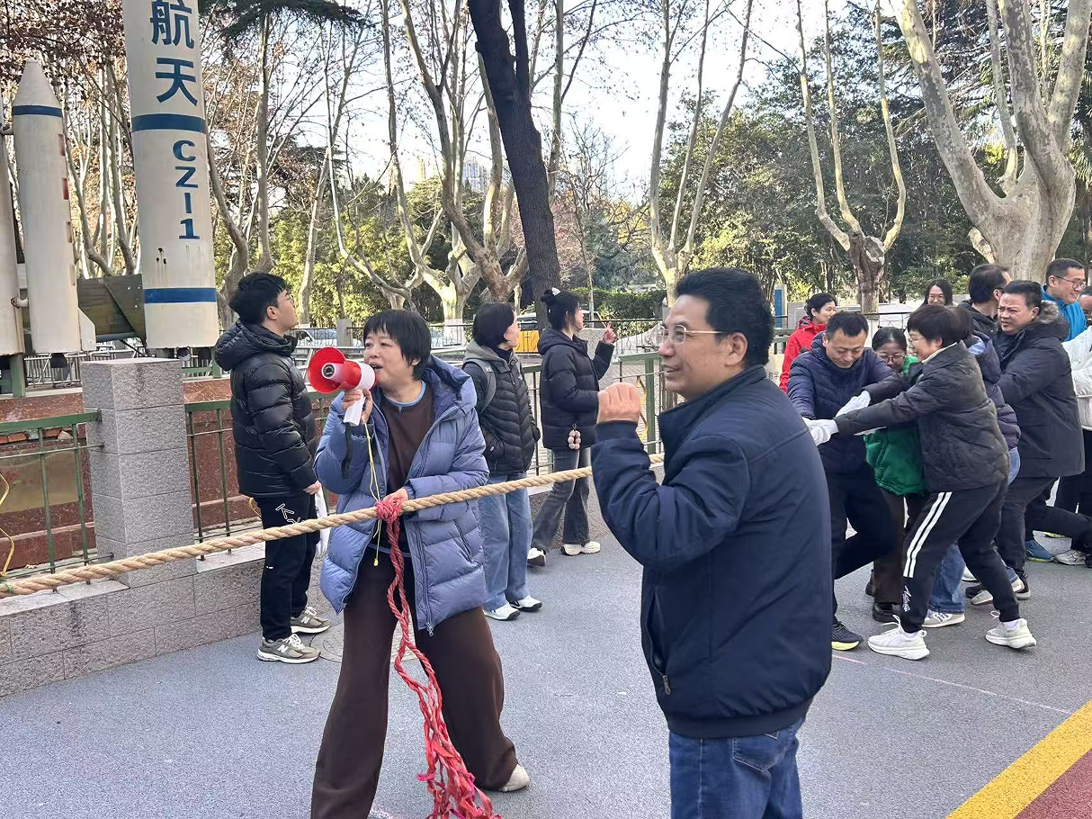 活动分设教职工拔河比赛和越野赛两项。全体教工分为两队参与活动。各方队员团结拼搏,全力争胜,场外的加油助威声更是一浪高过一浪。一时间,学院停机坪前呐喊助威声、欢笑声此起彼伏,赛场一片沸腾。最终,力学系、力学实验中心联队获第一名。