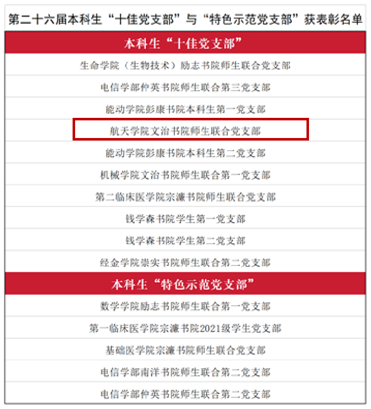 近日,西安交通大学第二十六届本科生“十佳党支部”评选结果揭晓,航天学院文治书院师生联合党支部凭借扎实的支部建设、过硬的工作成效和突出的先锋作用,获评校“十佳党支部”。这是该支部自2023年、2024年连续两年获校“十佳党支部”后,再获此殊荣,充分展现了支部强大的凝聚力、战斗力和新时代学生党员的青春风采。