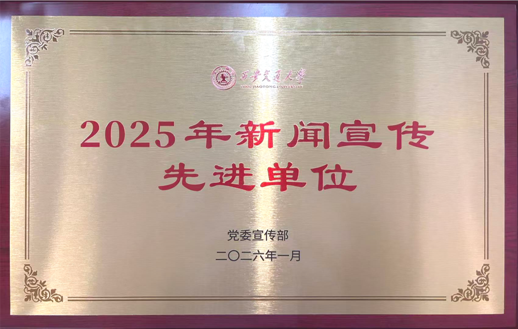近日,西安交通大学新闻通联座谈会召开。会上揭晓了2025年度新闻宣传工作评选结果。航天学院凭借扎实的工作举措、丰硕的宣传成果获评西安交通大学新闻宣传“先进单位”,充分彰显了学院在思想引领、成果传播和校园文化建设等方面的突出成效。