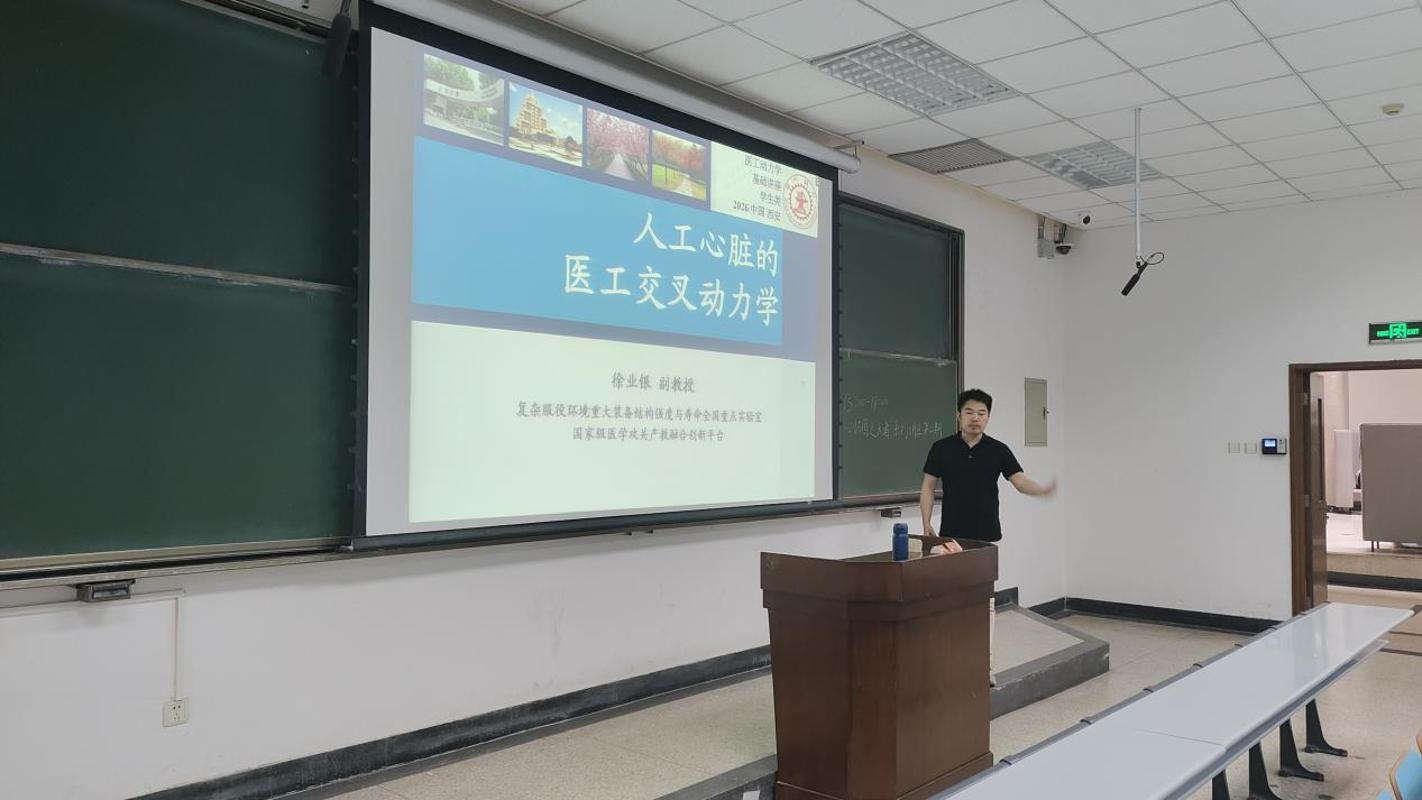徐业银以“人工心脏的医工交叉动力学”为题,从临床需求出发,系统解析了磁悬浮人工心脏设计中的关键技术挑战与医工交叉研究方向。他结合自身科研经历,鼓励学生早进实验室、早接触真问题,“在实践中学真知、悟真谛”。菅振围绕“液滴微流控与3D打印”,介绍了微尺度流体在光刻机、精准医疗等领域的创新突破。他通过生动案例,展现了微流控技术对高端制造与生物医学的推动作用,并勉励同学们“立足基础、放眼前沿,勇于探索未知领域”。