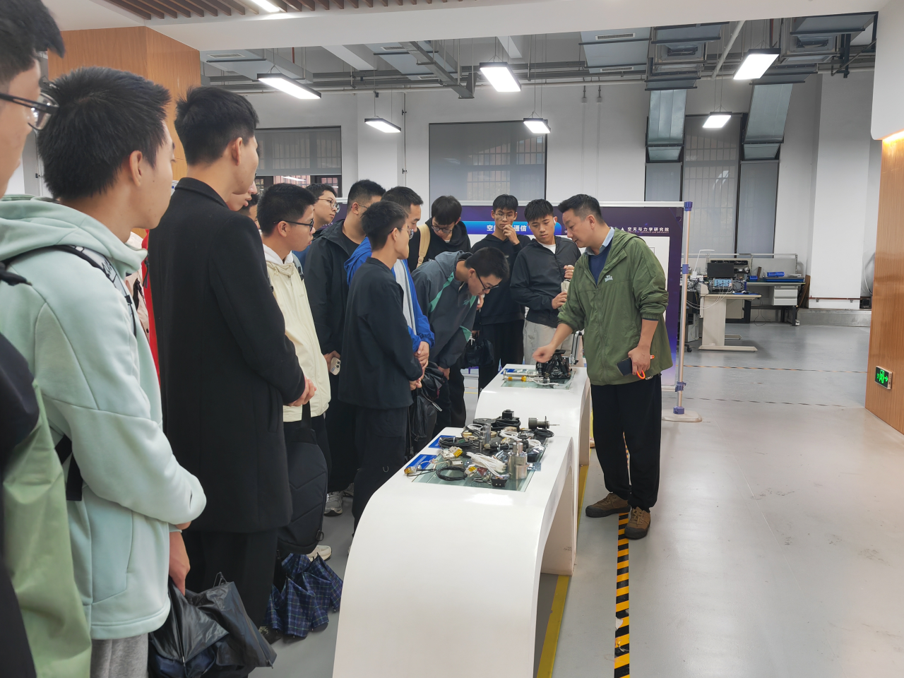 参观的最后一站是航天结构振动控制工程实验室。实验室里陈列着由航天航空学院自主研发的、应用于航天航空领域的一系列关键零部件和子系统。冯勃老师讲解道,无论是火箭发射过程中的剧烈振动,还是卫星在轨运行时的微振动,都可能影响载荷安全与任务成败。交大团队在此领域深耕数十年,研发的先进振动控制技术与产品,已成功应用于多项国家重大航天工程。这些凝聚着智慧与匠心的高精尖成果,让同学们深刻体会到航天航空不仅是 “大” 的艺术,更是 “细” 的哲学,“稳” 的学问。