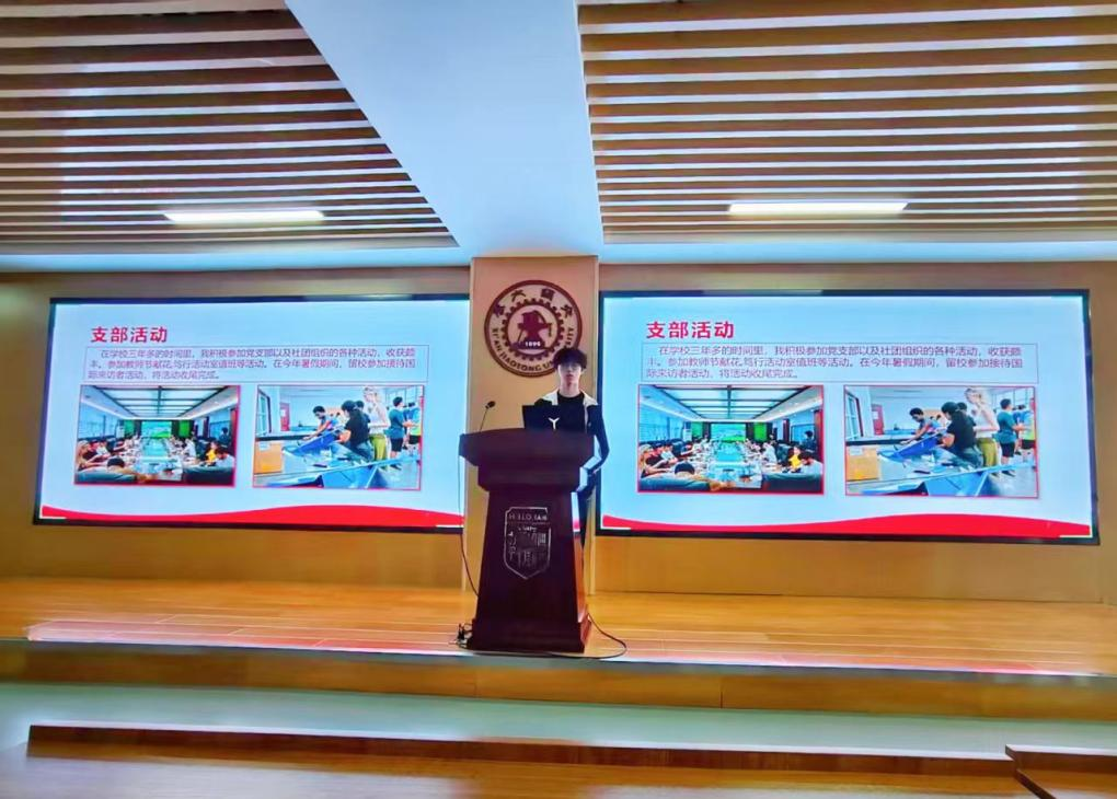 26名入党积极分子按照预先确定的顺序依次登台,结合自身成长经历、学习实践感悟,从个人基本情况、对党的认识演进、入党动机锤炼及未来努力方向等方面展开真挚陈述。来自大三、大四的同志们普遍结合专业学习、科研实践与志愿服务经历,分享了在航天领域科研攻关中体会到的党员先锋模范作用,以及在疫情防控、社区服务等志愿活动中深化的为民初心;大二的同志们则重点讲述了入学以来在党支部培养下的思想成熟过程,通过参与党史学习教育、主题党日活动等,逐步树立起“为共产主义事业奋斗终身”的坚定信念。