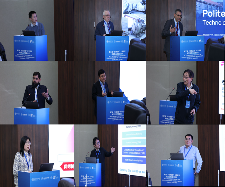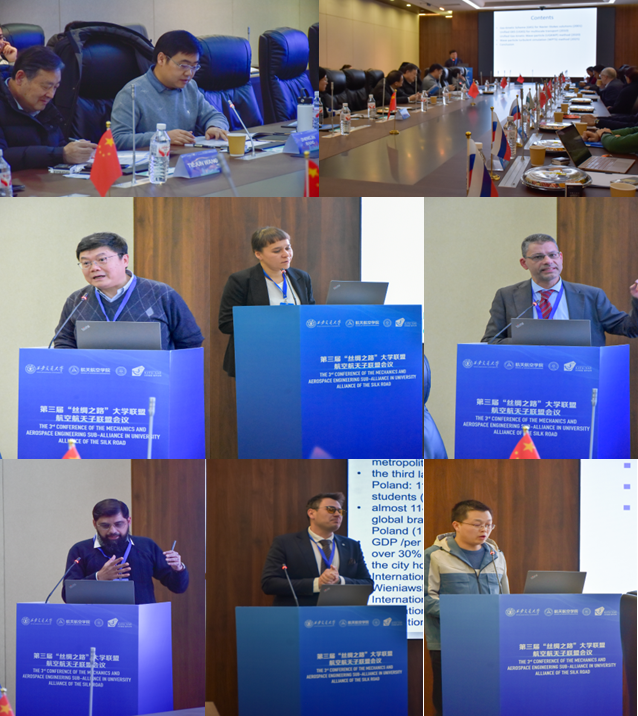 当天下午,同期举行航空航天子联盟学术讲座。西安交大航天航空学院院长助理王正锦主持会议,来自子联盟院校的6位专家学者与分享了各自研究领域的成果与思考:香港科技大学徐昆教授做了题为“航空航天应用中的计算流体动力学”(Computational Fluid Dynamics in Aerospace Applications)报告,莫斯科物理技术学院Zavialova Natalia教授做了关于“数学建模在卫星优化中的应用”(Application of mathematical modeling to satellites optimization)的报告,米兰理工大学Alessandro Croce教授做了题为“课堂之外:课外活动在学业发展中的作用”(Beyond the Classroom: The Role of Extracurricular Programs in Academic Development)的报告,古拉姆・伊沙克・汗工程科学与技术学院Khalid Rahman教授做了题为“用于宽带超表面吸收体及印刷电子应用的柔性基底导电油墨喷墨印刷”(Inkjet Printing of Conductive Inks on Flexible Substrates for Broadband Metasurface Absorbers and Printed Electronics Applications)的报告,波兹南工业大学Andrzej Jan Miklaszewski做了关于“机械合金化-热压制备NiAl-xWC复合体系的新视角”(The new perspectives of NiAl-xWC composite system prepared mechanical alloying and hot pressing)的报告,西安交通大学左逢源副教授做了题为“复杂锥形激波/边界层干扰的流体力学及其应用”(Fluid mechanics of complex conical shock/boundary layer interaction and its application)的报告。